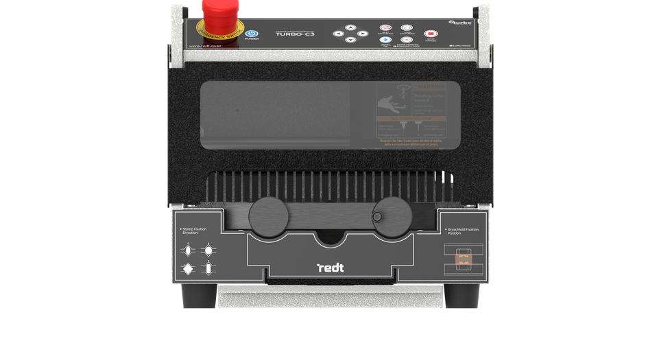 The Turbo-C3 supports seal stamp engraving using a V-shaped jig.
